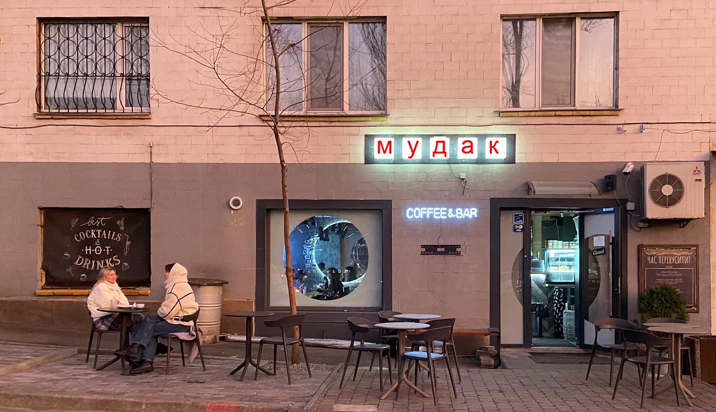 The New York Times published an article about the Trump-themed dive in my neighborhood that has since changed its name to мудак1. Crime, Coffee & Cocktails, a bar around the corner, serves up better stuff for less.